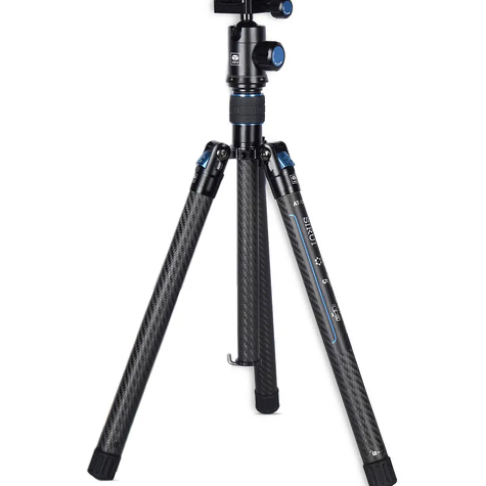 TheAT-125+E-10 Carbon Fiber Traveler Tripod with E-10 Ball HeadfromSiruiis a lightweight and portable travel support that is ideal for hiking and outdoor photography. This full featured tripod has a maximum height of 60.6 inches, but folds down to a compact 13.9″, making it easy to carry along wherever a tripod may be needed. The 5-section carbon fiber legs have a twist-and-pull design that sets up and folds down in just seconds. The center column is removable and reversible, making it ideal for low perspective and macro photography. The center column also separates into a short column version for another low-perspective option.
