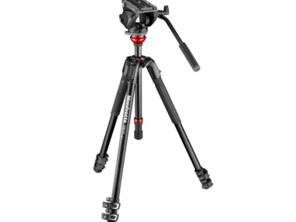 The Manfrotto 500 Fluid Video Head with 190X Video Aluminum Tripod & Leveling Column Kit includes a flat base fluid video head and a flat base 2-stage tripod with ball-leveling center column. The head features a wider-than-standard platform to provide better support for DSLRs, and supports a maximum load capacity of 11 lb. A 500PLONG quick release plate is included, and the head’s side lock mounting system enables the plate to click in from above, instead of aligning and sliding in from one end.